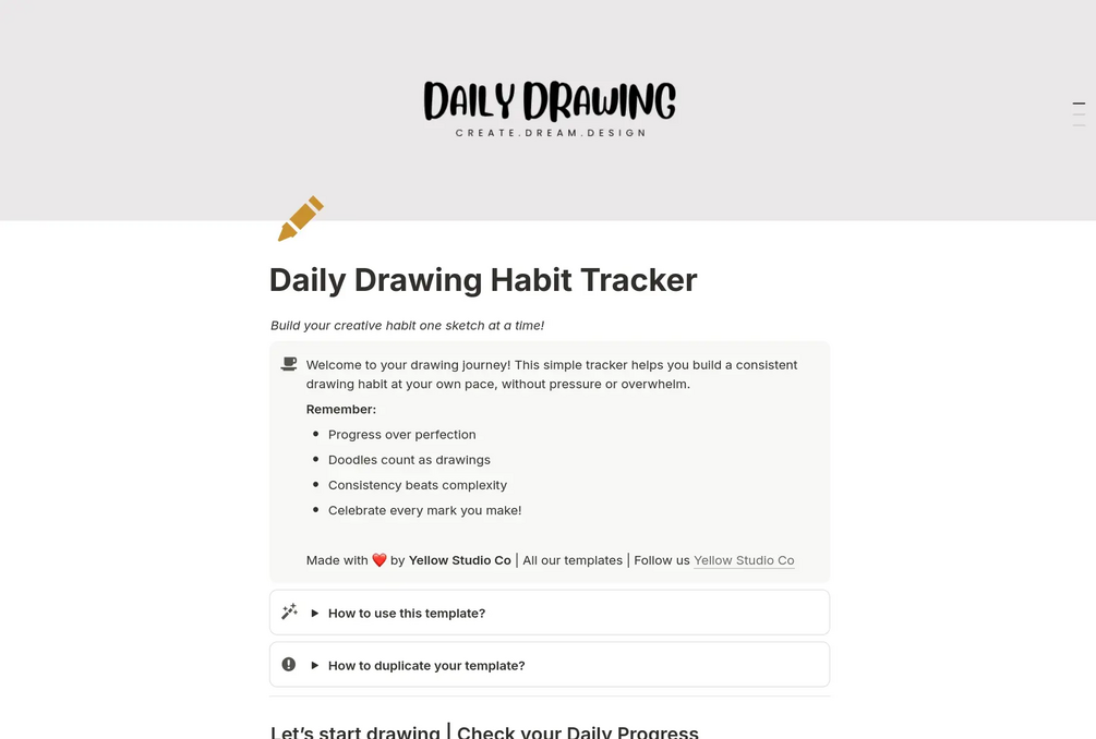 Build a consistent drawing habit with this simple Notion tracker—no pressure, just progress!