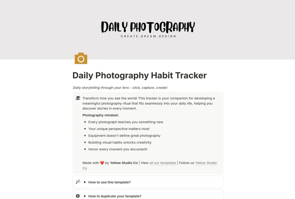 Daily Photography Habit Tracker | Notion Template